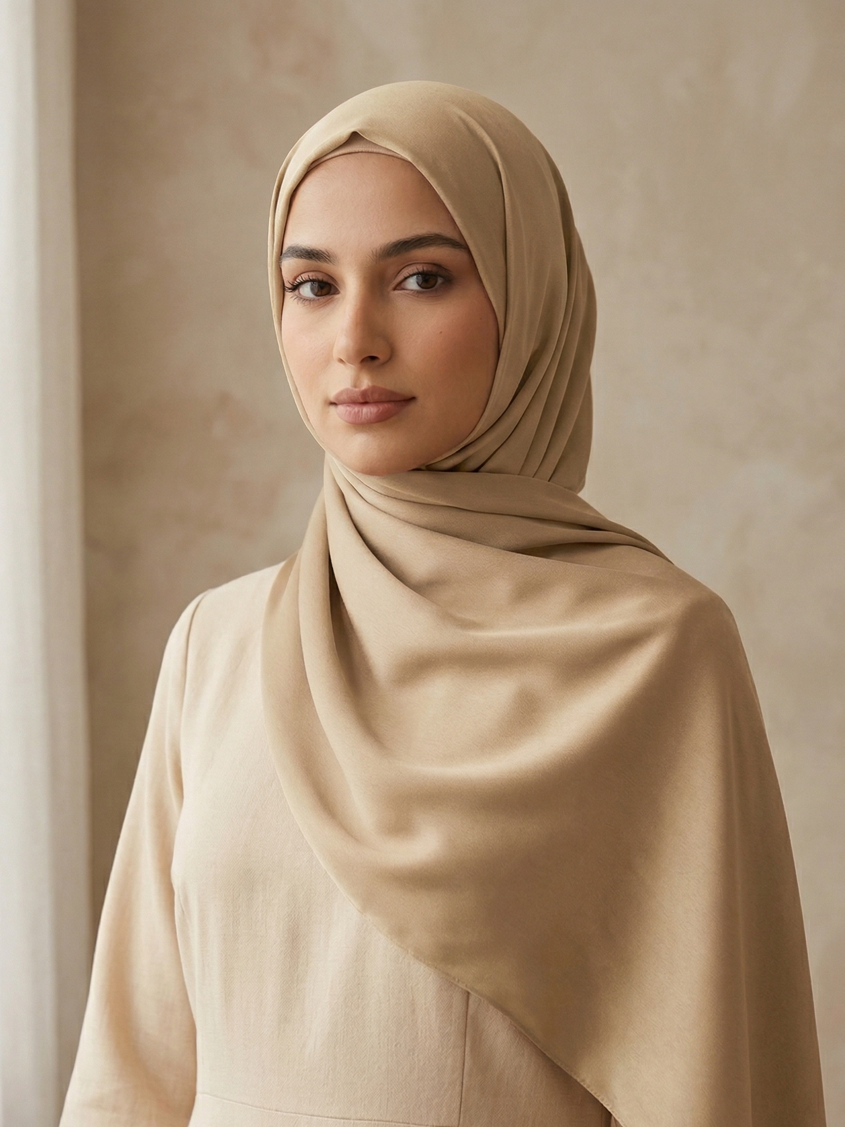 Crafted from premium Matte Satin fabric, this scarf drapes beautifully with a smooth, fluid texture that feels soft against the skin while maintaining a refined finish. The subtle, low-sheen surface offers a modern take on satin; delivering elegance without shine, making it perfect for both everyday wear and elevated occasions. Known for its graceful fall and polished look, this fabric brings effortless sophistication to every style.
