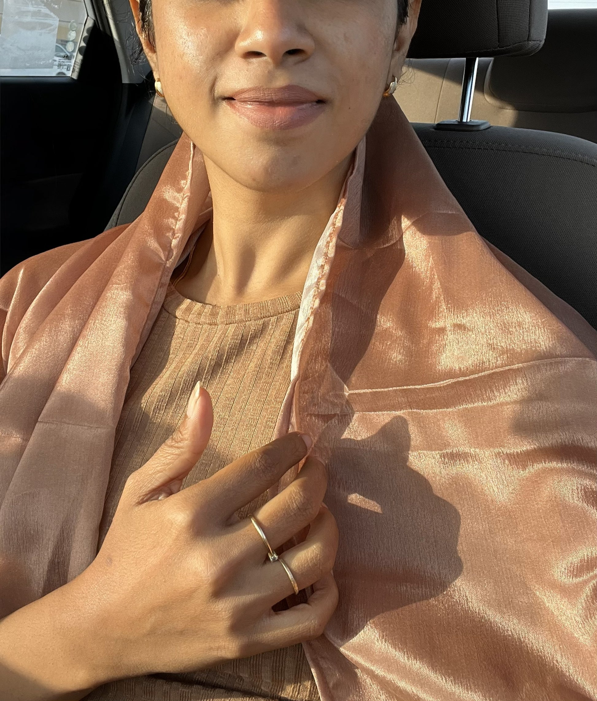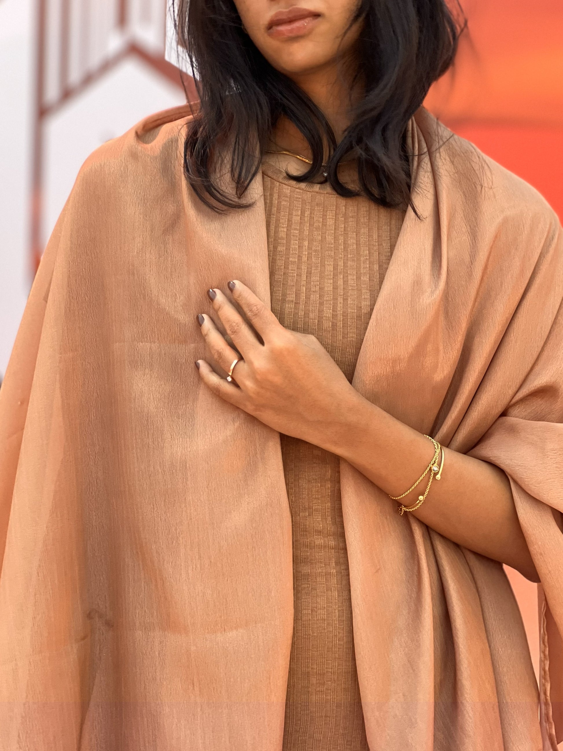 Crafted from premium Chinon fabric, this scarf drapes gracefully with a soft, airy texture that feels weightless yet refined. The delicate sheen of Chinon adds a touch of understated luxury — perfect for elevating both everyday and occasion wear. Known for its elegant fall and subtle translucency, this fabric exudes effortless sophistication with every wrap.
